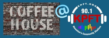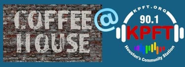 Did you know you can listen to Pete in his ngig as a DJ? He is on the air at Coffee House on KPFT HD2 with Pete Owens on Wednesdays from 5:00-7:00pm. To view the KPFT listening schedule, visit the site. Or, download the KPFT app for your phone. Pete is spinning an eclectic mix of tunes from the introspective to the upbeat. You will recognize some local and regional acts you may have already seen in person at a Coffee House Live show. You may recognize his co-host....